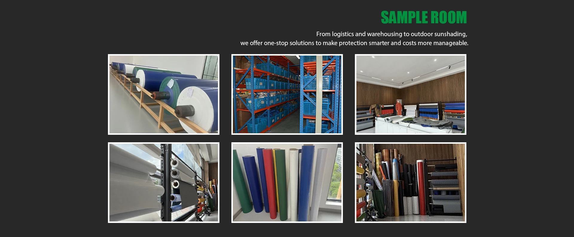 Ana ürünler:PVC tarps, kereste tarps,PVC kumaş, PVC sargı malzemesi, dış ürünler